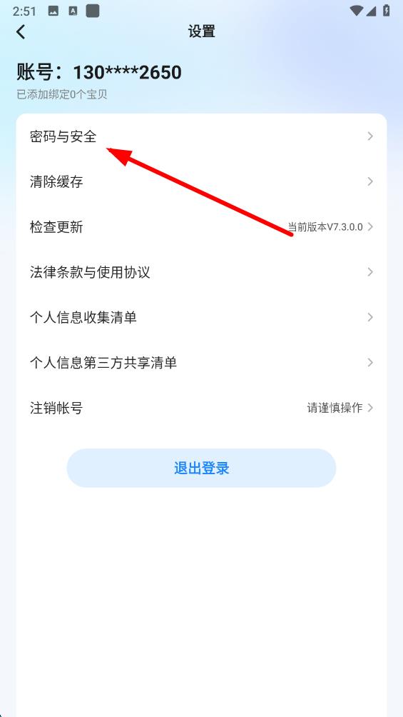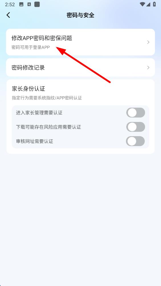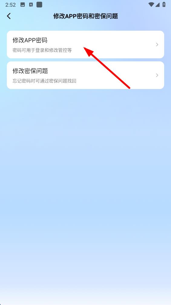 3、在密码与安全界面,点击修改APP密码和密保问题的选项。