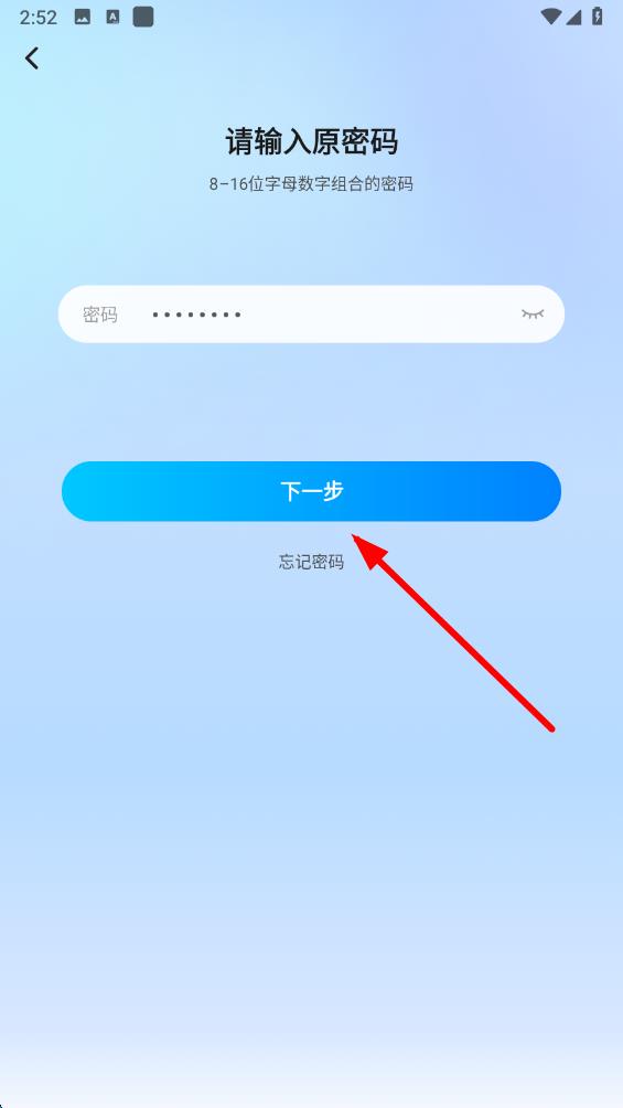 5、在请输入原密码界面,正确输入原密码后点击下一步。