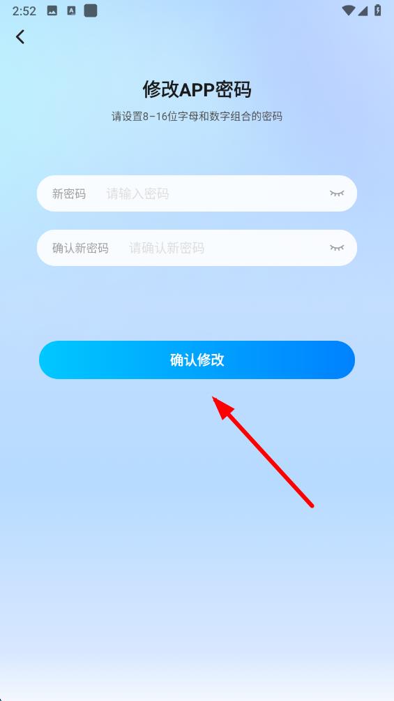 6、然后在新界面设置新密码并确认新密码,最后点击确认修改完成密码修改。