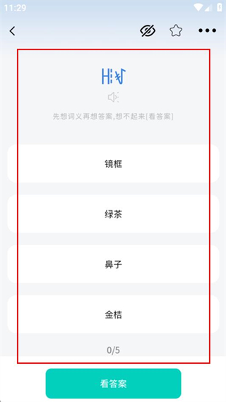 3、在学习页面,根据彝语词汇选择对应的中文释义,完成该题学习。