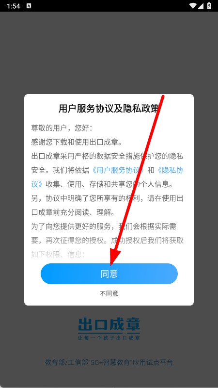 1、点击同意接受用户服务协议和隐私政策,进入首页。