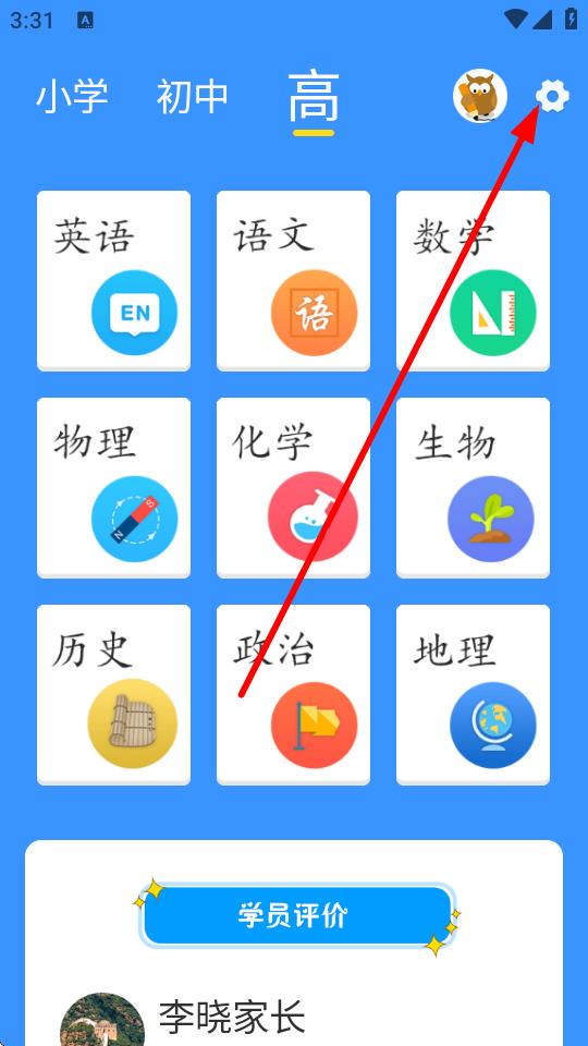 1、打开乐学课堂应用,在主界面点击右上角设置图标。