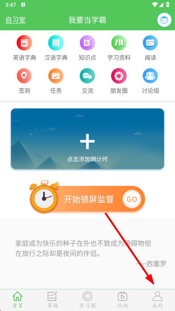 1、打开我要当学霸app,点击底部导航栏中的我的,进入个人相关页面。