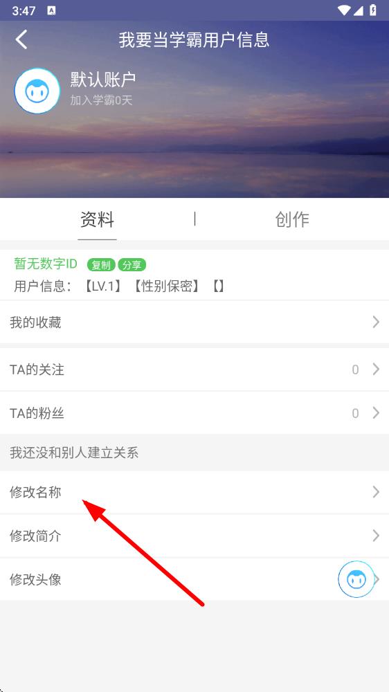 3、在用户信息页面里,找到并点击修改名称选项,弹出修改名称的输入框。