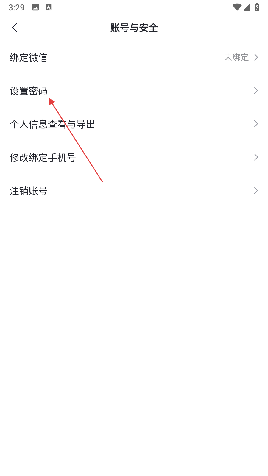 3、在账号与安全页面,点击设置密码选项,进入设置新密码页面合。