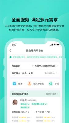 基于患者病情、家属需求,智能推荐持证护理员、护士及康复师,支持按技能(如术后护理、老年照护)、经验、语言等筛选。