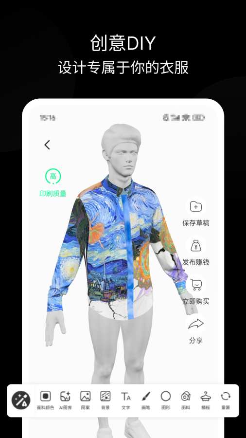 【更简单的设计工具】只有服装设计师才能设计衣服?超便捷的设计工具,助力你的想法变成好看的衣服,支持在线3d试穿模拟,可实时预览服装穿着效果。除基础的面料更换、精准调色换色和印花替换外,内置500000+图案库与色板库,支持任意位置添加贴图和文字,让设计衣服如同p图般简单!情人节情侣装设计、万圣节服装制作、圣诞毛衣设计、毕业季班服定制、电竞战队服设计通通不在话下