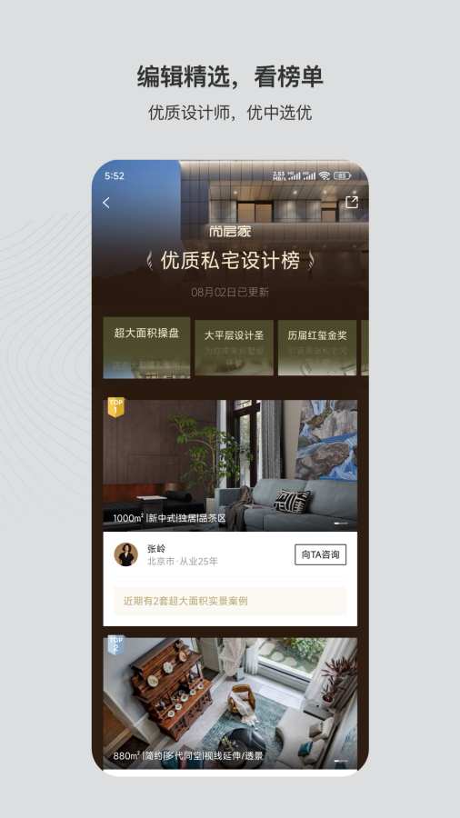 「尚层家」是由尚层集团推出的别墅大宅装修设计平台。 致力于「为每个大宅找到设计师」。 - 创新性推出了别墅大宅版「风格测试」、「智能匹配」等功能; - 一站式整合了案例、设计师、榜单、灵感集、合辑、笔记等内容; - 全方位覆盖了户型、风格、色系、空间等维度; - 帮助有大宅装修需求的业主与设计师高效顺畅沟通。 来自应用汇: 尚层家