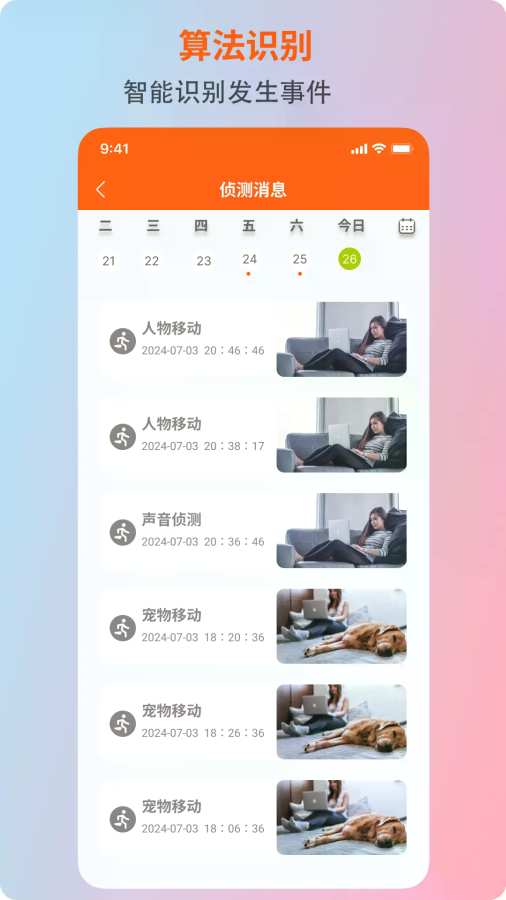 【智能报警随时了解动态】自带多种报警类型。发现异常动态时消息、及时接收报警提醒;