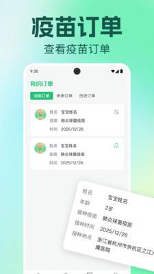 知识应有尽有,助您深入了解疫苗,科学育儿。还有“我的订单”功能方便您查看接种订单状态,无论是当前还是历史订单,都能一目了然。