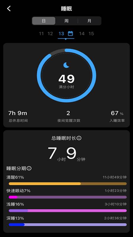 全面睡眠分析:深度、浅睡、REM睡眠周期精准监测,提供专业睡眠评分