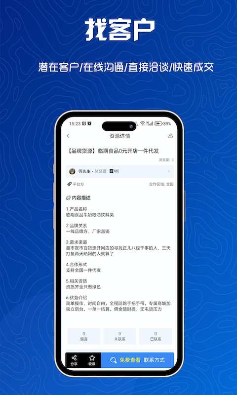 e来客是山东六匹马网络科技打造的商务信息资源对接应用,覆盖地推项目、合作甲方乙方、推广团队等海量资源。用户可发布合作需求,搜索匹配资源,助力业务合作、客户拓展。同时,为用户提供优质信息展示,是找项目、副业、兼职的理想之选。