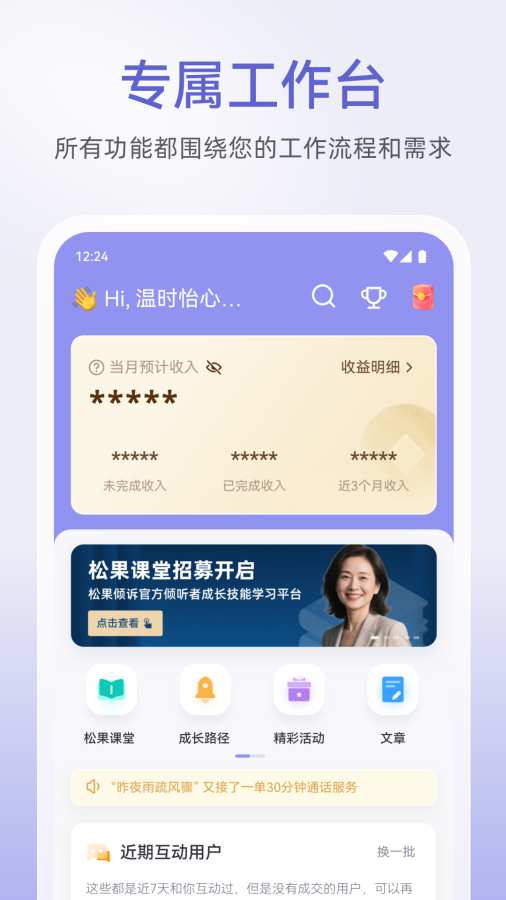 松果倾诉倾听者版不仅是工具,更是您的成长伙伴,帮助您不断优化服务。