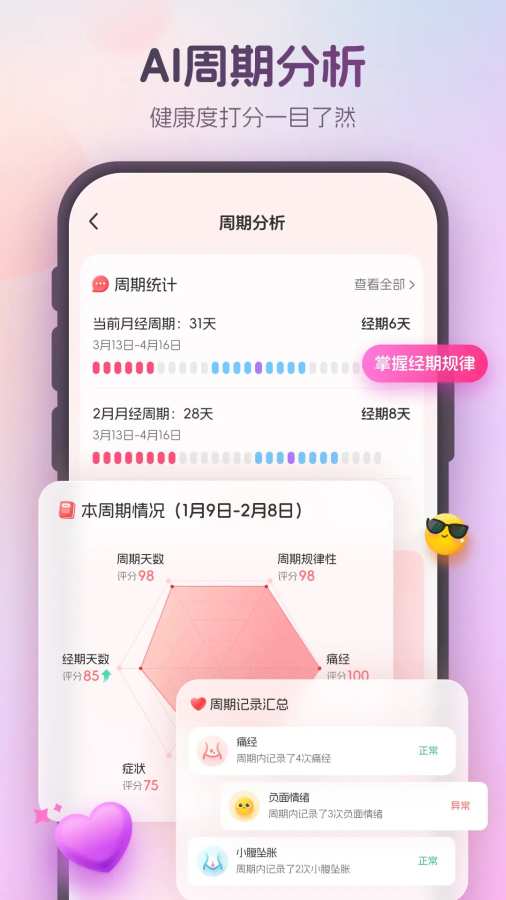 暖悦App,陪伴,记录,更懂你这是你的生理期记录小助手,是女生和女人必备的工具* 全周期分析功能,精准智能预测经期。行业独有的智能分析功能,结合多维度的记录信息,给出精准经期预测、智能推算排卵日、提供生活建议!* 支持多样化的信息记录,记录体重、体温、心情等多方面数据* 简洁优雅的UI设计,完全无广告的清爽体验,都市女性手机上的不二之选!* 无需实名、保护隐私、不和任何个人信息关联。快来下载体验看看吧,包你用过就停不下来 来自应用汇: 暖悦