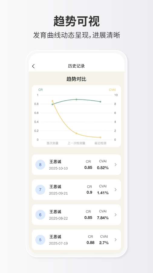 StarBaby头形分析APP软件——宝宝头型健康助手,专注于宝宝头型健康。通过科学的方法和专业的指导,帮助家长了解并改善宝宝的头型问题。应用提供精确的头型测量工具、专业的头型健康评估报告,以及个性化的矫正建议。让宝宝拥有健康美观的头型是我们的使命。 来自应用汇: StarBaby头形分析APP软件