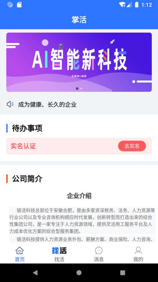 掌活是链活科技公司旗下的一站式服务APP, 掌活APP旨在整合人力资源的线上、线下资源,服务企业单位、个体用工需求与个人的兼职需求,构建起以“企业”和“求职者”为中心,基于兼职、灵活用工、劳务服务等多种服务形式的业务平台。 来自应用汇: 掌活