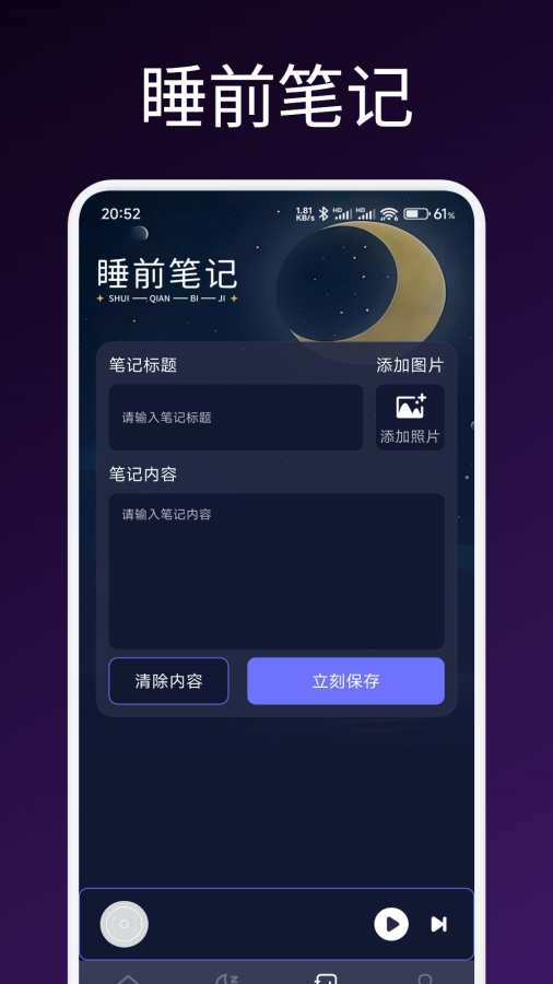 一款帮助你睡眠的应用。我们从大自然与冥想中获得灵感,在软件中提供了自然声音等音频内容,帮助你从快节奏的生活缓慢下来,让你快速的进入睡眠的状态——减少焦虑与压力、保持专注平静、放松思绪,获得更好的睡眠质量。 来自: 云湖