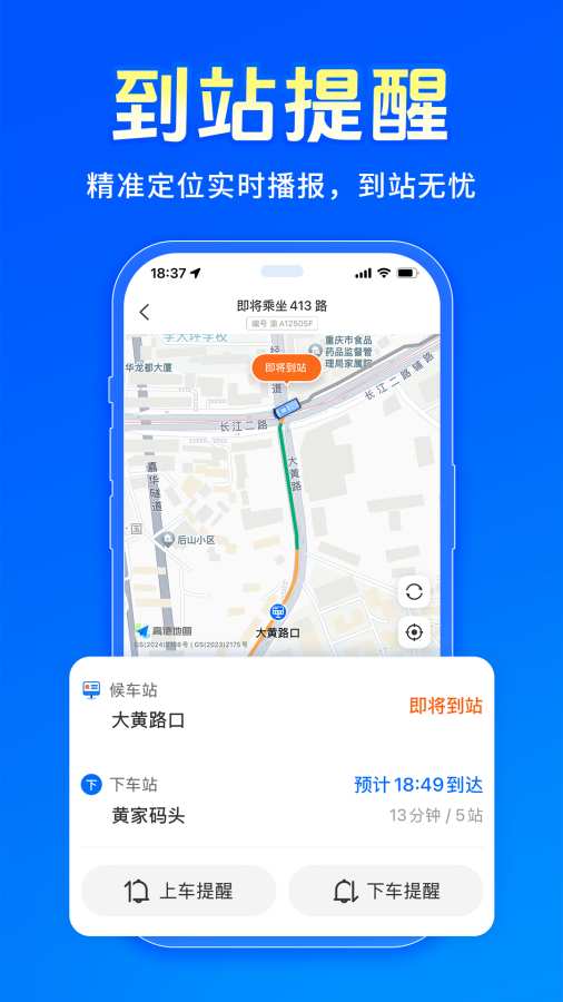 上下车提醒:提供上下车提醒设置及到站语音提醒,不必担心错过车或坐过站。