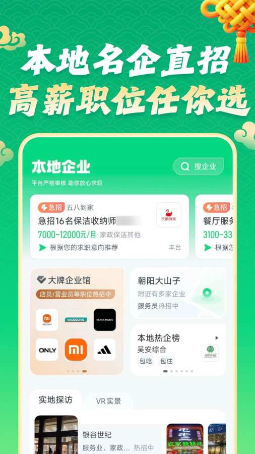 赶集招聘(原赶集直招)——真实企业直接招,找工作无套路 工资高、离家近、稳定、福利待遇好的工作应有尽有。百强名企入驻,轻松入职知名企业,让你在亲朋好友面前面子十足。随时随地,一对一直接沟通老板,当场敲定工资。 互联网、银行、物流快递、电商、名企连锁……各行业大咖都在这里抢夺人才。 销售、客服、文员、送餐员、司机、快递员、收银员、营业员、服务员……各岗疯狂招人。