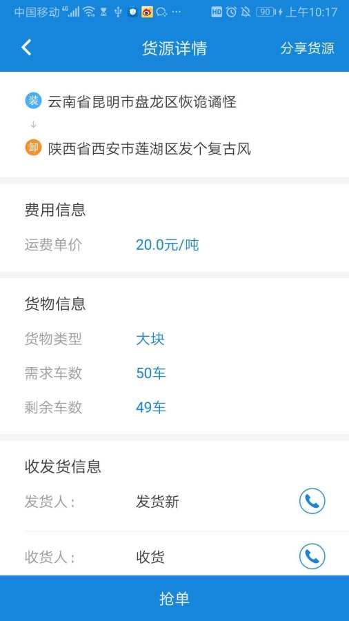 司机端APP,为司机提供货源大厅、订单管理、运费提取、加油等功能,通过和货主端app的配合,形成了一整套完整的网络货运体系;为货车司机提供陆运帮平台的全国货源,货车司机可通过APP接单、拉货、上传磅单、结算运费等,帮助货车司机在线管理运单。司机在APP内还可进行车辆和认证信息的管理,车队长用户还可以在APP内管理车队所有车辆。运单结算后,司机可以直接在APP内发起提现操作。 来自: 陆运帮司机
