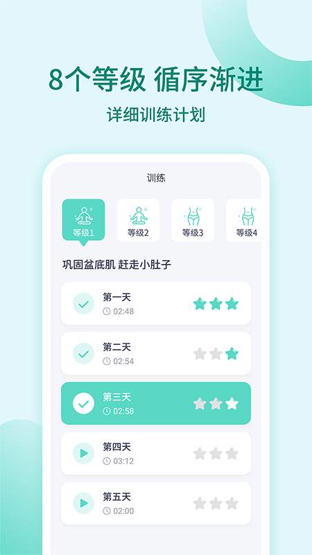 凯格尔训练是一款提供盆底肌锻炼指导的专业健身app,使用者可以随时随地开启健身锻炼课程。