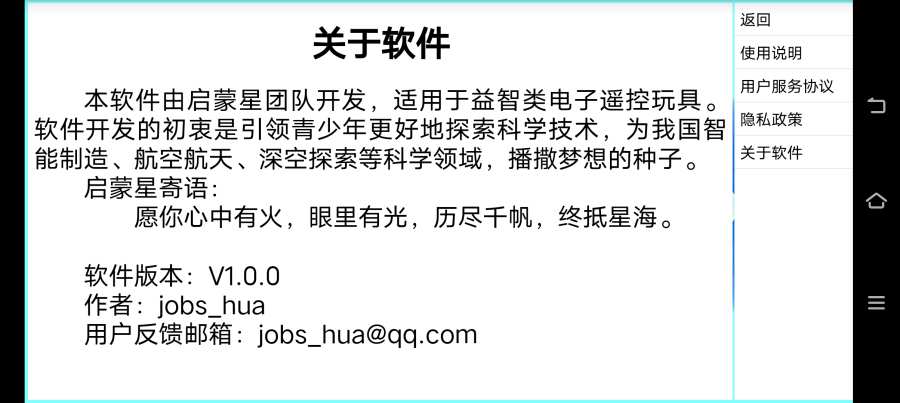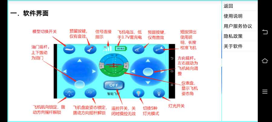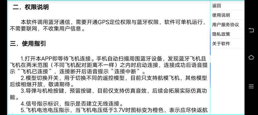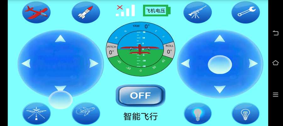 1.通过BLE5.0与蓝牙终端小飞机连接。 2.手机端可发送摇杆控制指令遥控小飞机飞行。 3.手机端可实时检测航模飞机姿态变化并显示仪表盘。 4.手机端实时监控小飞机电压变化,低电压告警。 5.手机端模拟发射导弹和航炮,科技感爆棚。