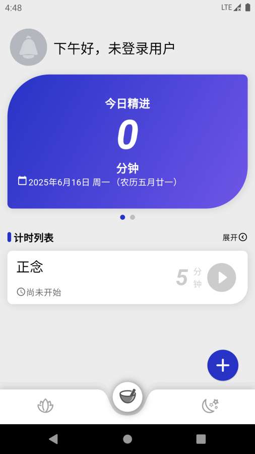 正念、站桩、瑜伽计时器【更新说明】1.增加两种桌面小组件,长按桌面空白处可在添加桌面组件时设置通过点击小组件直接开始计时,桌面组件可设置显示农历或藏历2.增加网络缓存功能,没有网络时能够正常播放已缓存音频。【欢迎反馈任何问题及建议】【最近更新】1. 支持 Pad 分屏显示;2. 计时单元播放增加字幕自动显示开关;3. 播放字幕时点击计时按钮可以暂停或结束计时;4. 文字播放页面增加了进度及速度控制。5.倒计时增加百位数;6.增加农历月历显示; 来自应用汇: 不昧