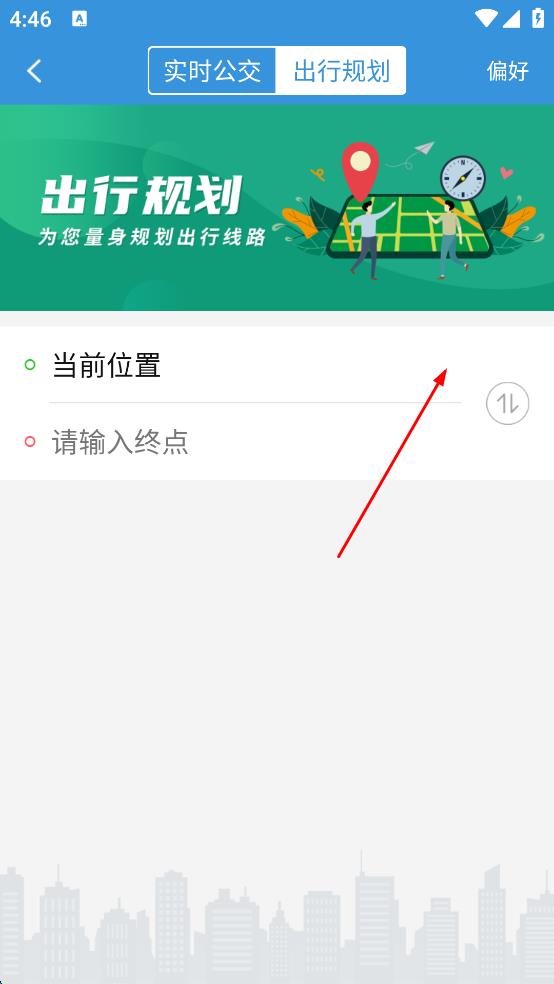 3、在出行规划页,依次填写“当前位置”与“请输入终点”信息,即可获取量身规划的出行线路 。