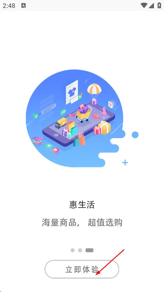 2、若有“惠生活”引导页,点击“立即体验”,进入相关生活服务板块,浏览海量商品信息 。
