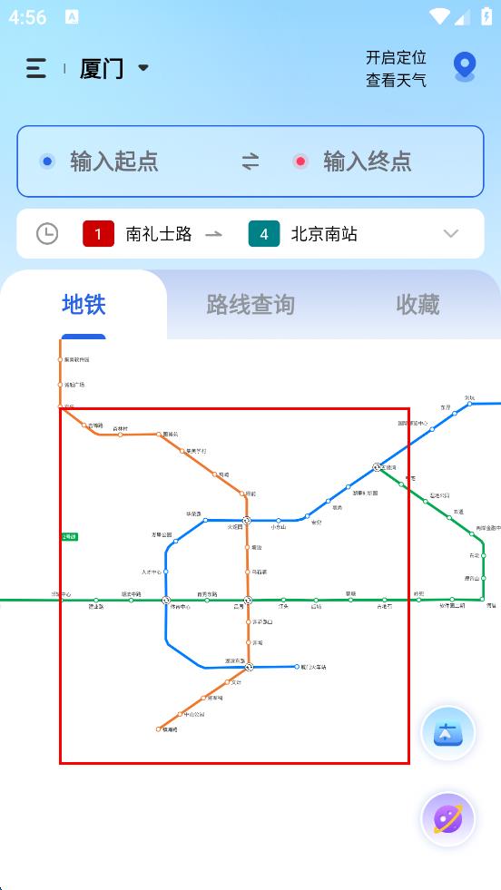 收藏常用线路站点,首页左上角点击即能打开收藏