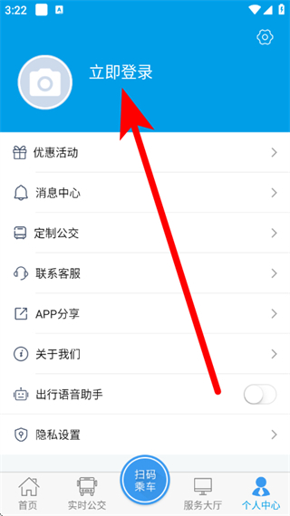 1、打开沧州行,点击底部的个人中心,进入个人页面。