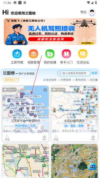 1、打开兰图绘应用,在首页点击需要测量距离的地图,进入地图详情页面。