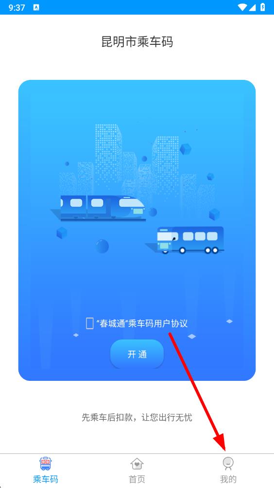 1、打开春城e路通app,点击底部导航栏中的我的,进入个人相关页面。