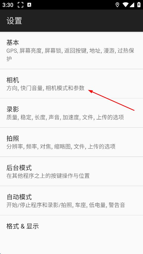 1、打开DailyRoads行车纪录器,点击界面上方设置图标,进入设置页面,找到相机选项并点击,准备调整相机参数。