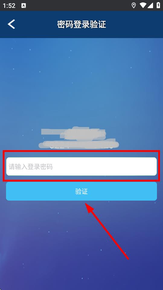 3、进入密码登录验证界面,在输入框中输入登录密码,然后点击验证按钮。