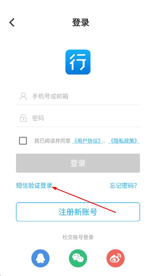 3、在登录页面,点击短信验证登录的选项,进入短信验证登录界面。