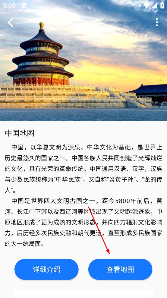 2、在中国地图列表页面,选择想要查看的中国地图条目,点击进入该地图的介绍页面,可看到关于中国的文化、历史等相关介绍。