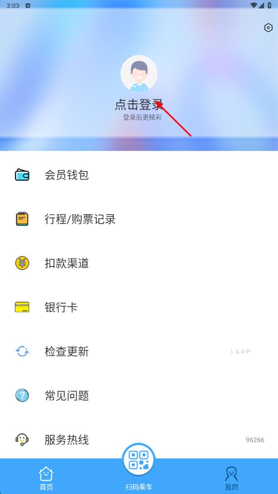 3、若需乘车,点击“扫码乘车”,依据提示开通刷脸或扫码功能,乘车后可在“我的”页面查看行程、扣款等记录。