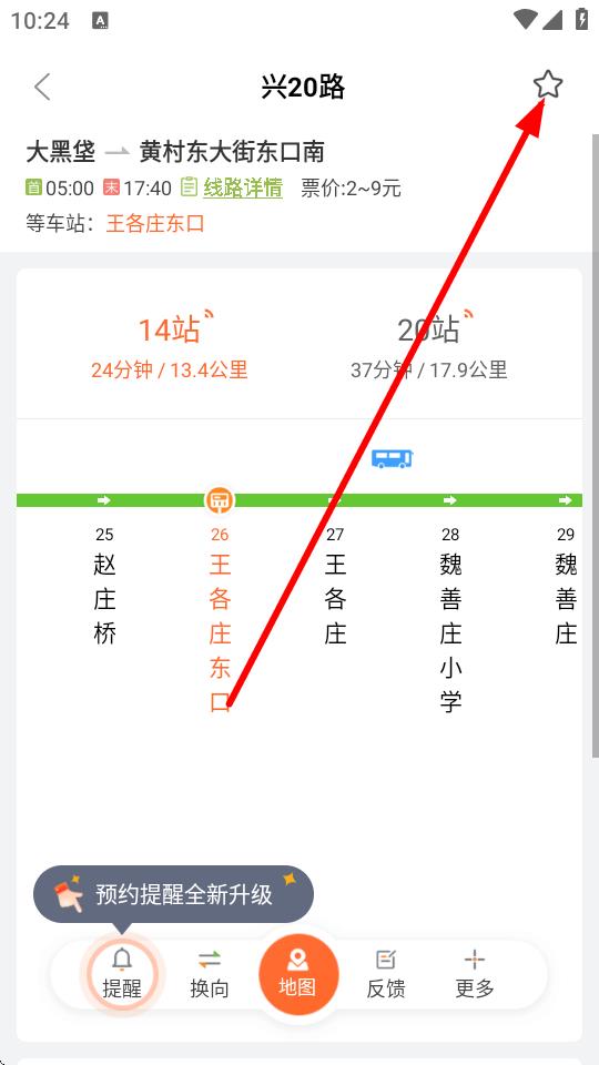 4、进入该公交线路详情页面后,点击右上角的星星图标,即可完成路线收藏。