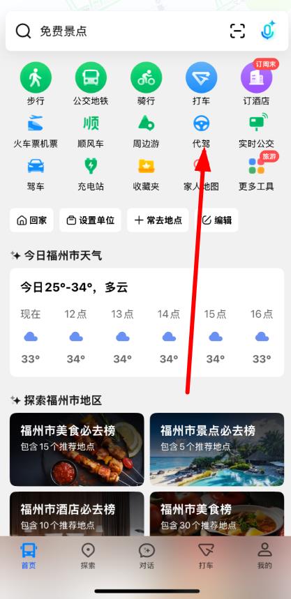 2、在首页功能区中,找到并点击代驾选项。