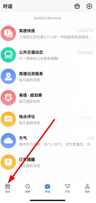 1、打开高德地图APP,点击底部导航栏中的首页。