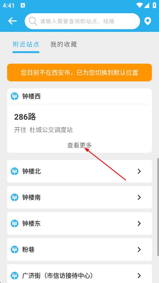 2、在站点的线路信息中,找到需要查看的公交,点击“查看更多”,进入公交在站点的详细信息页面。