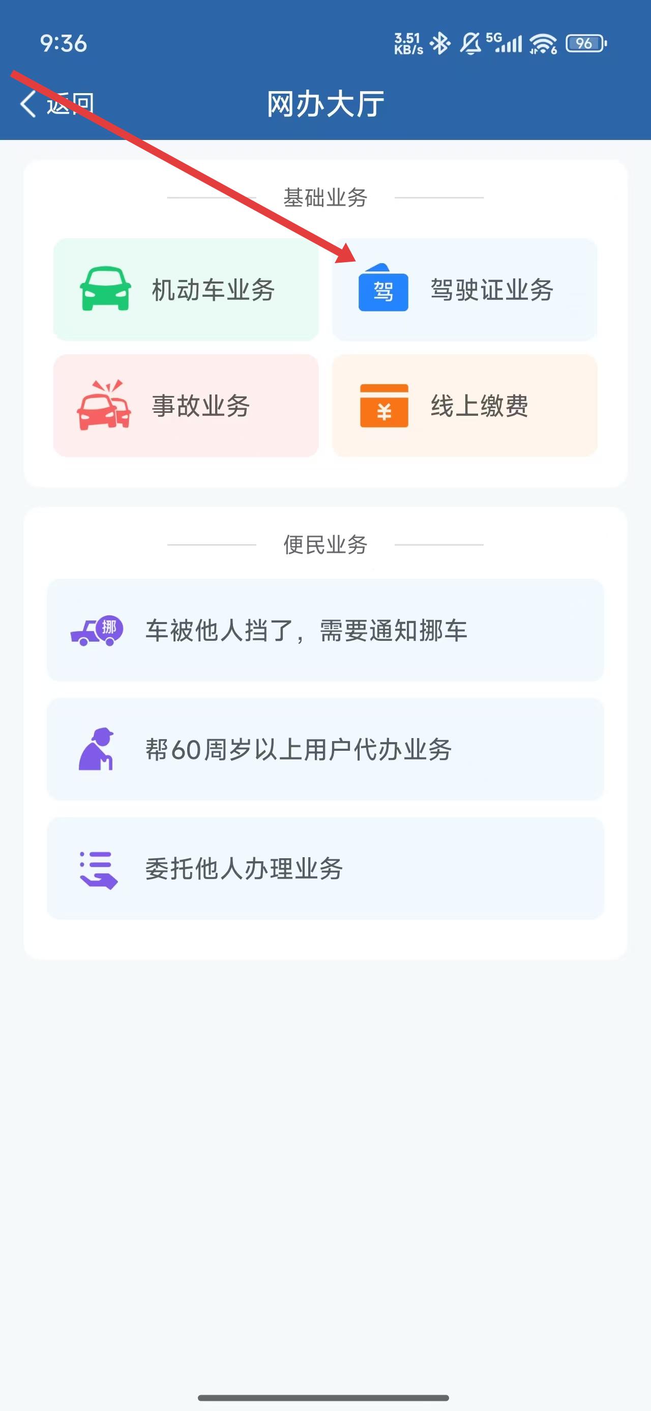 1、可以通过点击基础业务模块下的驾驶证业务选项,进入查看相关业务。