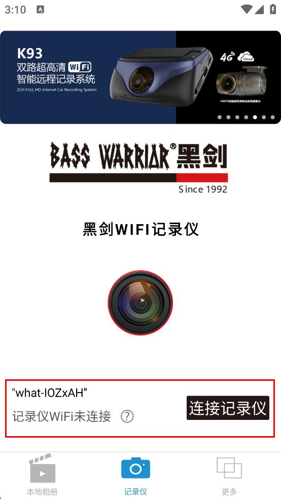 使用APP将手机与黑剑记录仪通过WIFI进行连接。