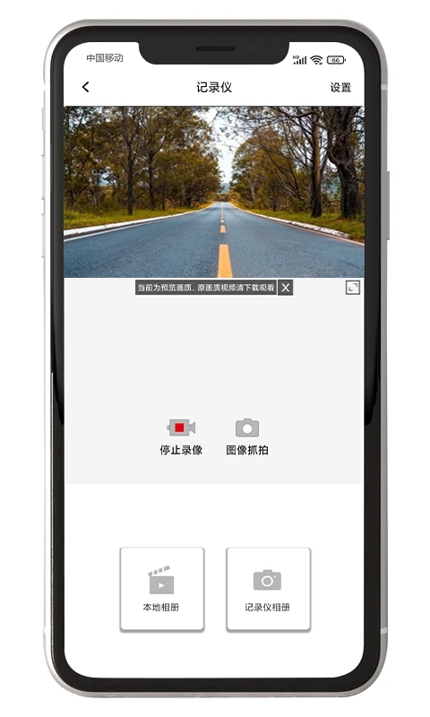 连接成功后,用户可以通过手机APP端实时预览记录仪端的影像;