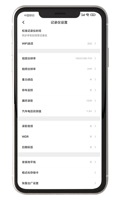 用户可以通过APP对记录仪功能菜单进行设置;