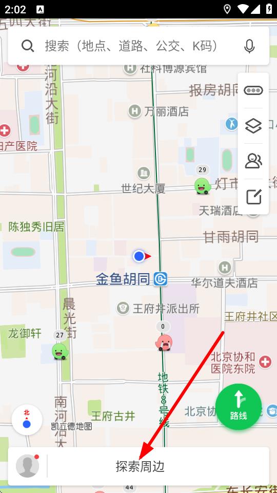 1、打开凯立德导航应用,在主界面点击左下角的探索周边按钮。