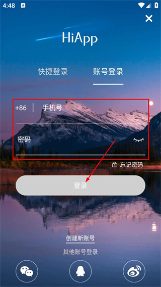 4、在界面,填写手机号与密码,点击登录按钮,即可完成登录。