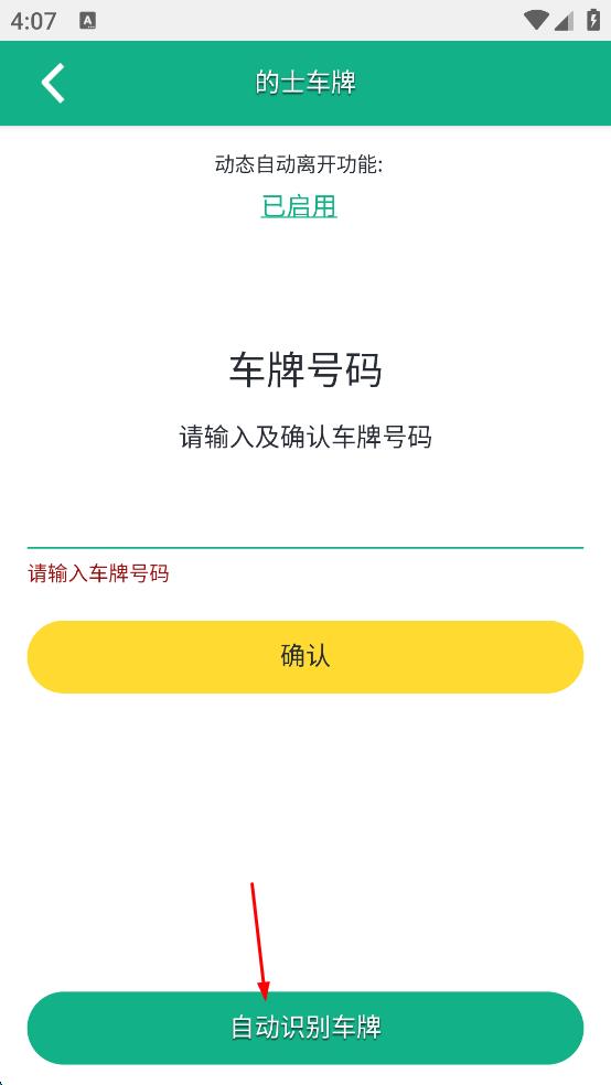 3、在的士车牌页面,可选择输入车牌号码或点击“自动识别车牌”,若选择自动识别,进入对准车牌页面。