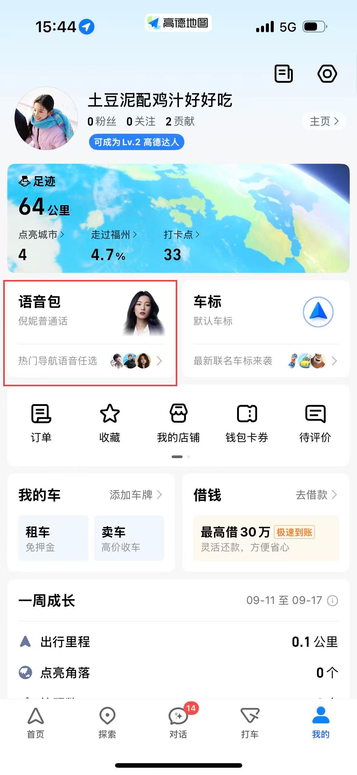 2、在个人中心页面,点击语音包选项,进入语音包页面。